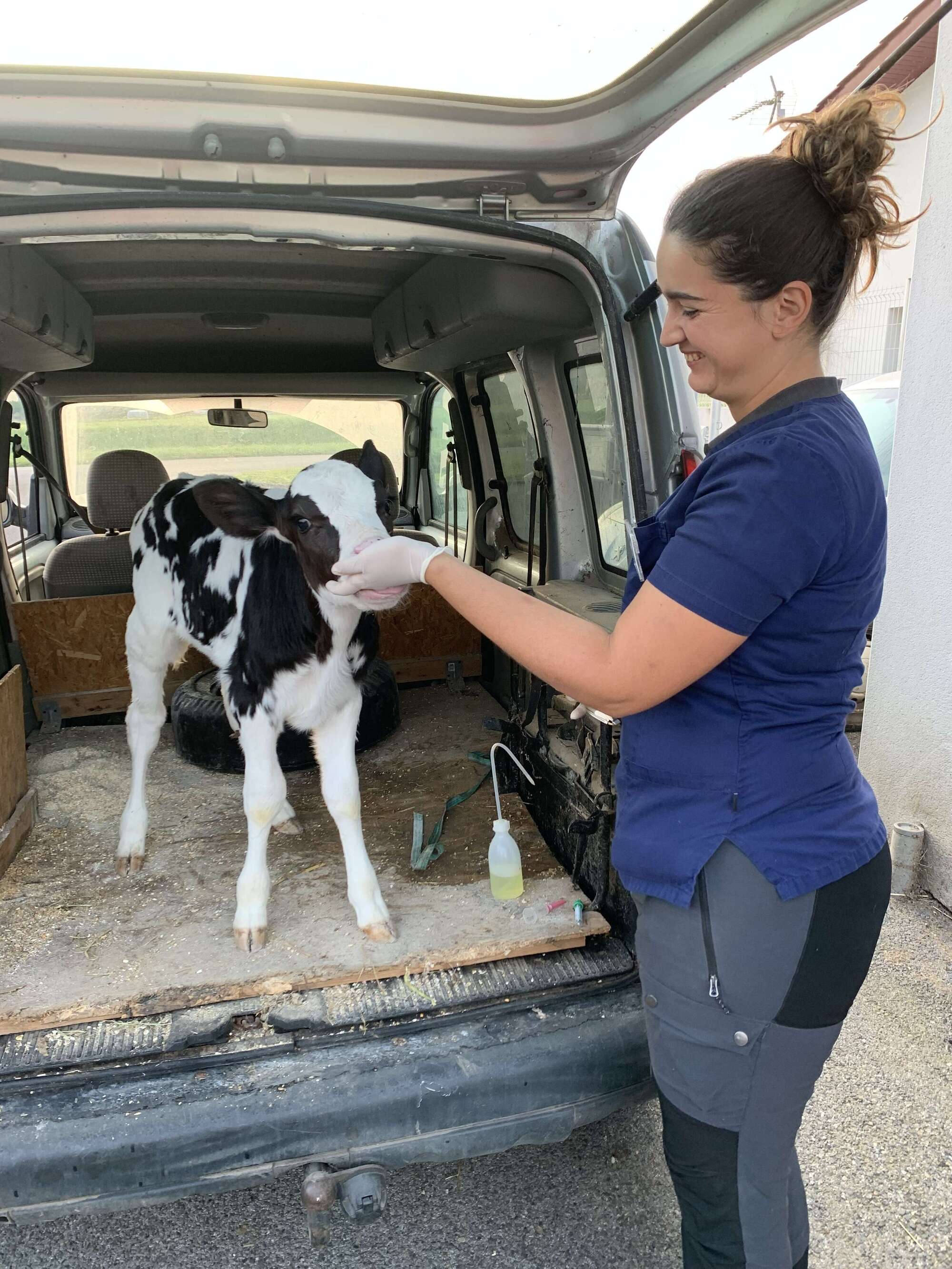 Passionnée par son travail, elle passe ses journées en tournée dans les fermes ou à s'occuper des veaux hospitalisés, quand elle ne fait pas une césarienne de brebis !